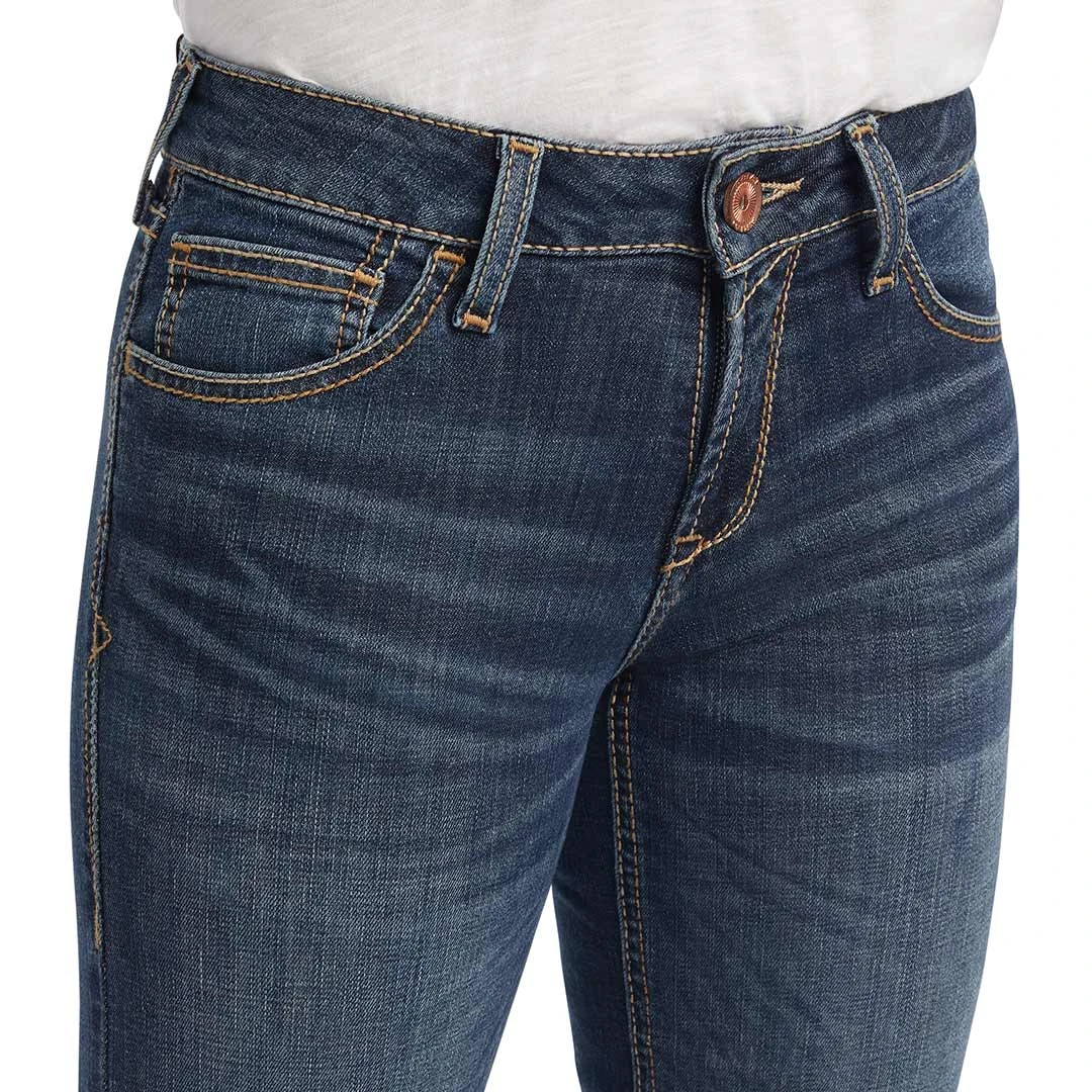 A classic trouser fit, the comfortable denim you love, and your favourite rise. Ariat paired all of that traditional stitching on the back pockets and a wide leg that goes with just about everything.