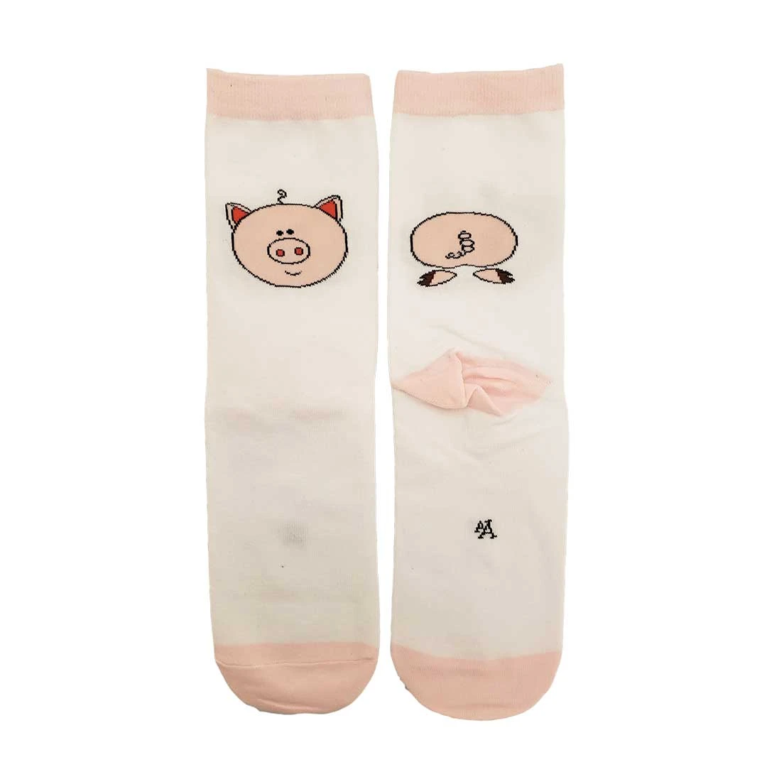 These fun and comfy socks from Austin Accent features a cute caricature design of the pig head on the front and pig tail on the back.