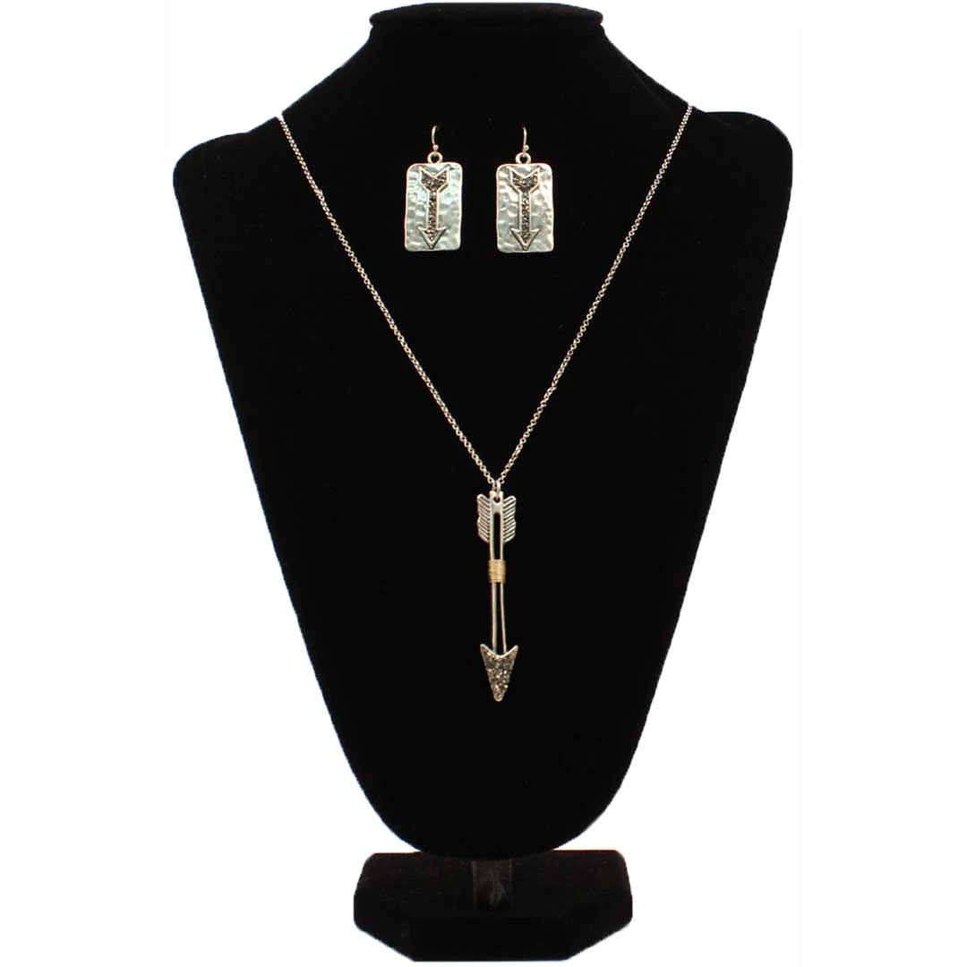Show off your western fashion sense with this Blazin Roxx necklace set by M&F Western Products. The necklace has a dainty silver chain with a silver arrow pendant. Matching French hook earrings complete this great set.
