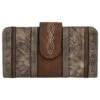 From Catchfly, this women’s coin purse features a steer skull with floral print and has 1 compartment, snap belt attachment, zip around closure and a key ring attached.