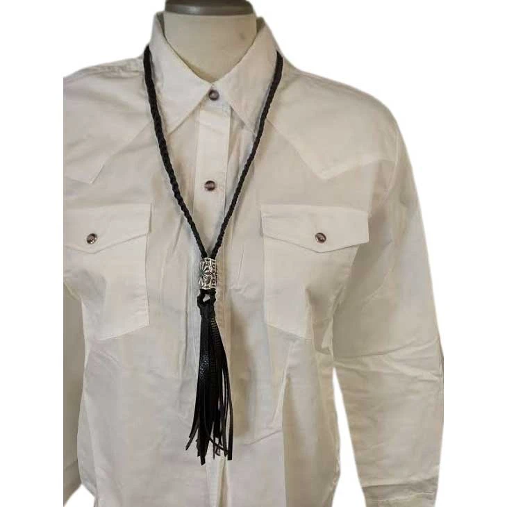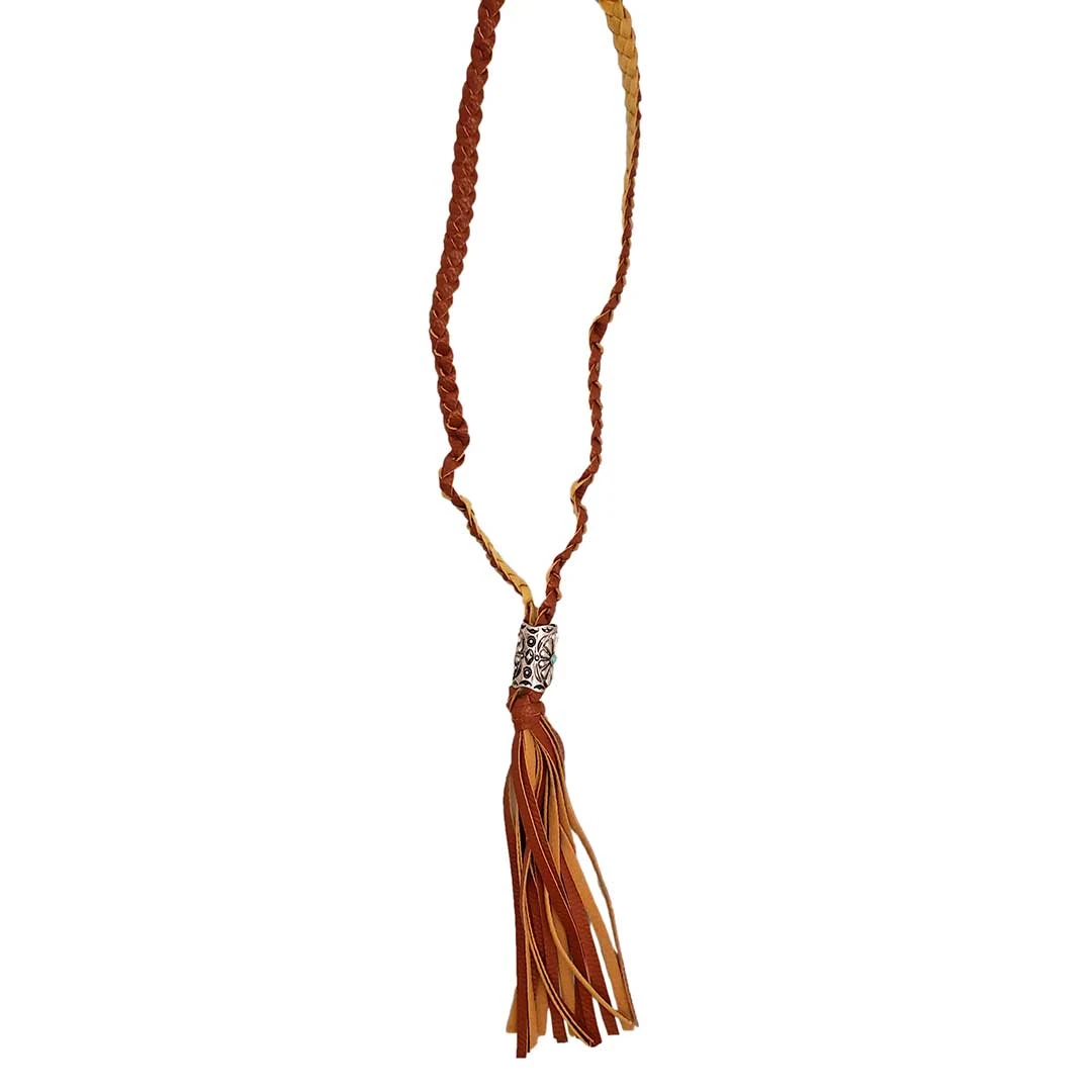 Subtle and classy, this leather necklace from Cindy Smith is great for any occasion. With braid detail, a Concho slide and tassel end, you can’t go wrong!