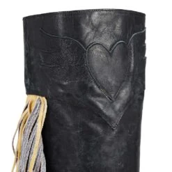 The Junk Gypsy Spirit Animal Boot is a firecracker of a boot, perfect for the Boho Cowgirl. Featuring feathered neon fringe, this high-heeled wonder is about the coolest thing ever. A corset lace design in the back and side zipper is both fashionable and functional. For one more layer of cool, this over the knee classic features the JG free spirited heart and wing logo.