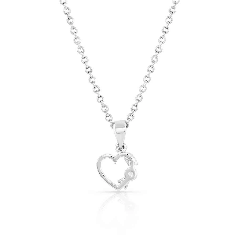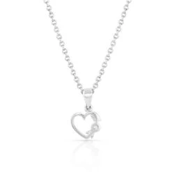 Montana Silversmiths’ Fiery Heart of Ice Silver Necklace is equally delicate, youthful, and love-inspired. It holds symbolism in the sacrifices we make for love. The entire necklace is a dangle pendant with a heart-shaped charm holding cubic zirconia crystals and an arrow. It sparkles bright in its silver-tone! It hangs from a 19″ chain.