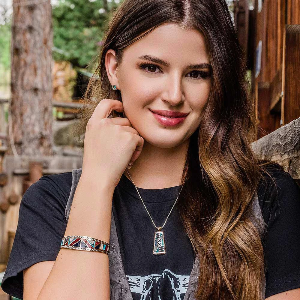 Montana Silversmiths decided to add even more to their American Legends Collection! Inspired by the resilience of the American legends, the simple square stud earrings are the perfect addition to this dynamic collection. Wear with other pieces from the collection or on their own either way these earrings are a must-have. The studs have an inlaid red agate, mother of pearl, onyx, and turquoise arranged in unique geometric shapes held together with a silver finished base. The studs are secure from a hypoallergenic post-back wire.