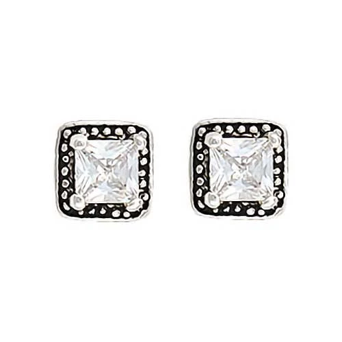 An elegantly classic style with a Western flair, these post earrings from Montana Silversmiths feature a princess cut crystal displayed prominently in a silver beaded trim bezel.