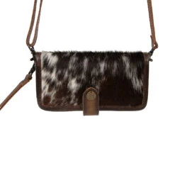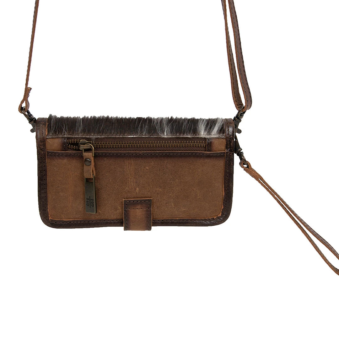 Complement any look with a touch of Western flair with the Cowhide Crossbody Wallet from STS Ranchwear. The wallet features card slots, currency and phone pockets, snap button closure, removable and adjustable crossbody strap and a removable wrist strap to convert to a clutch.