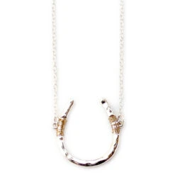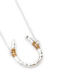 Bold yet delicate, this statement piece from Wyo-Horse will look great with everything, especially your favorite denim and boots. The necklace features a horseshoe with wrapped wire and hangs from a chain.